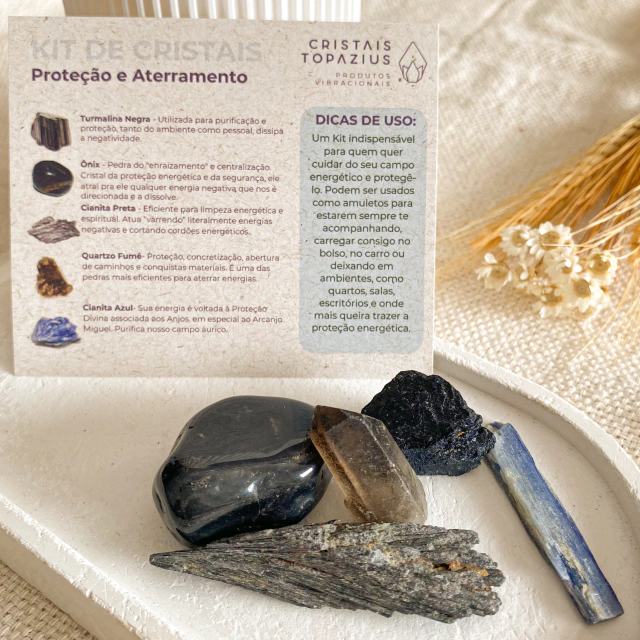 Esse podemos considerar um dos principais e mais essenciais Kits que você precisa ter. Nele selecionamos os cristais para proteção e aterramento, podem ser usados como amuletos para estarem sempre te acompanhando, carregar consigo no bolso, no carro ou deixando em ambientes, como quartos, salas, escritórios etc.