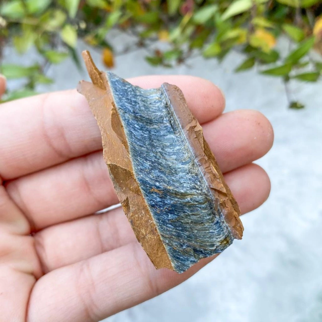 O Olho de falcão é o "primo/irmão" do Olho de Tigre. Você pode perceber algumas semelhanças, mas diferente do Olho de Tigre que sua cor é marrom com o brilho dourado, o Olho de Falcão possui o brilho azul acinzentado.