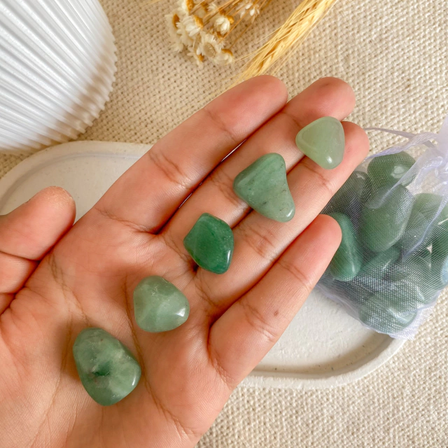 Pacote 100gr de Quartzo Verde Rolado 1cm a 2cm