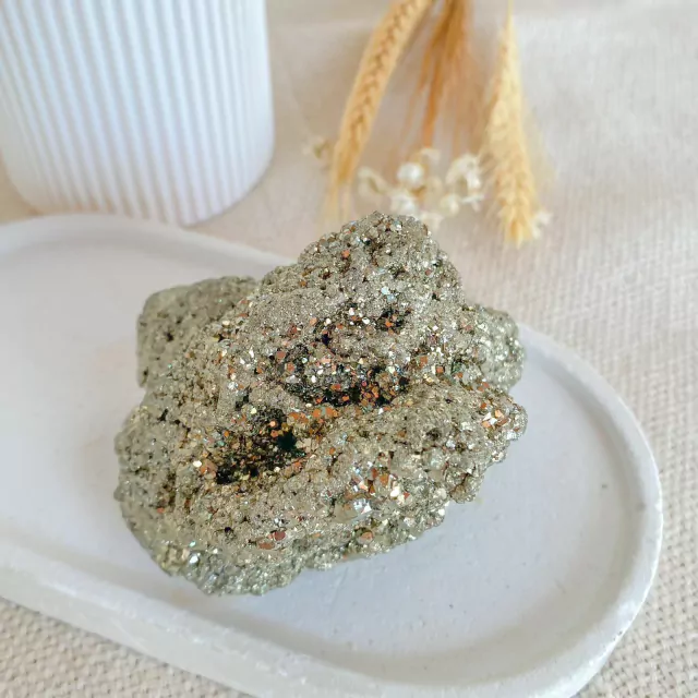 Além de atrair riquezas e bens materiais, a Pirita nos traz um brilho pessoal, nos incentiva, melhora nossa auto-estima, criatividade e ao mesmo tempo é uma pedra de proteção por conter enxofre e ferro na sua composição.